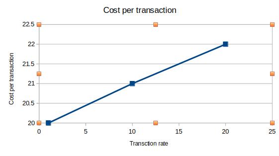 People often use graphs to show information, but often tell the wrong story. For example if you plot the total cost vs transaction rate you get a straight line
