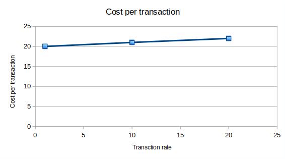 In actual fact there is an increase in the cost per transaction as the rate increases. So good scaling – but not perfect. It is linear – when it should have been flat!