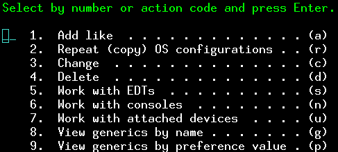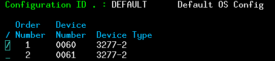 This is the list of systems you can connect the I/O devices to. Put a / in front of the config id (DEFAULT) and press enter. This gives