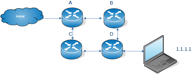 Similarly you can configure router D to say to get to the internet you can go via B or C.